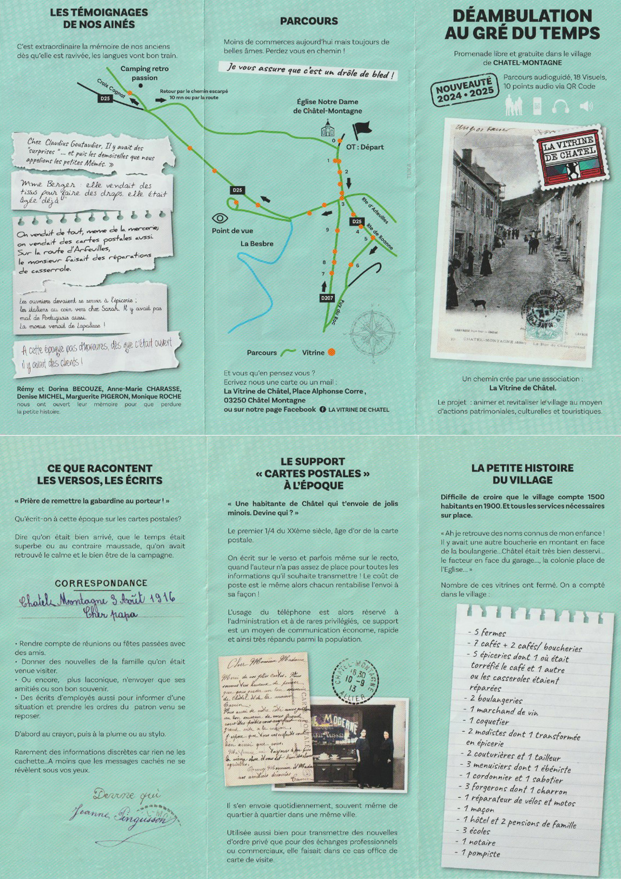 Fin d’année 2023 l’association La vitrine de Châtel située à Châtel-Montagne dans la montagne bourbonnaise, contact Stefan Colomb, pour l’élaboration d’un projet audio sur un parcours randonnée déjà existant. Après quelques réunions d’élaboration depuis février 2023, l’association se lance dans la récolte des information d’antan afin de permettre l’écriture des scénarios et des dialogues qui seront par la suite enregistrés en studio. La collecte d’anecdotes d’autrefois recueillis parfois auprès des personnes de la commune permettra l’authenticité des points audios. Stefan Colomb aura réuni un casting de 12 voix elles aussi authentiques, pour donner vie à la reconstitution historique de certains moments importants de la vie du village. Le parcours compte 16 points audio. Une fois sur place, vous flashez le QR code et voyagez dans le temps.